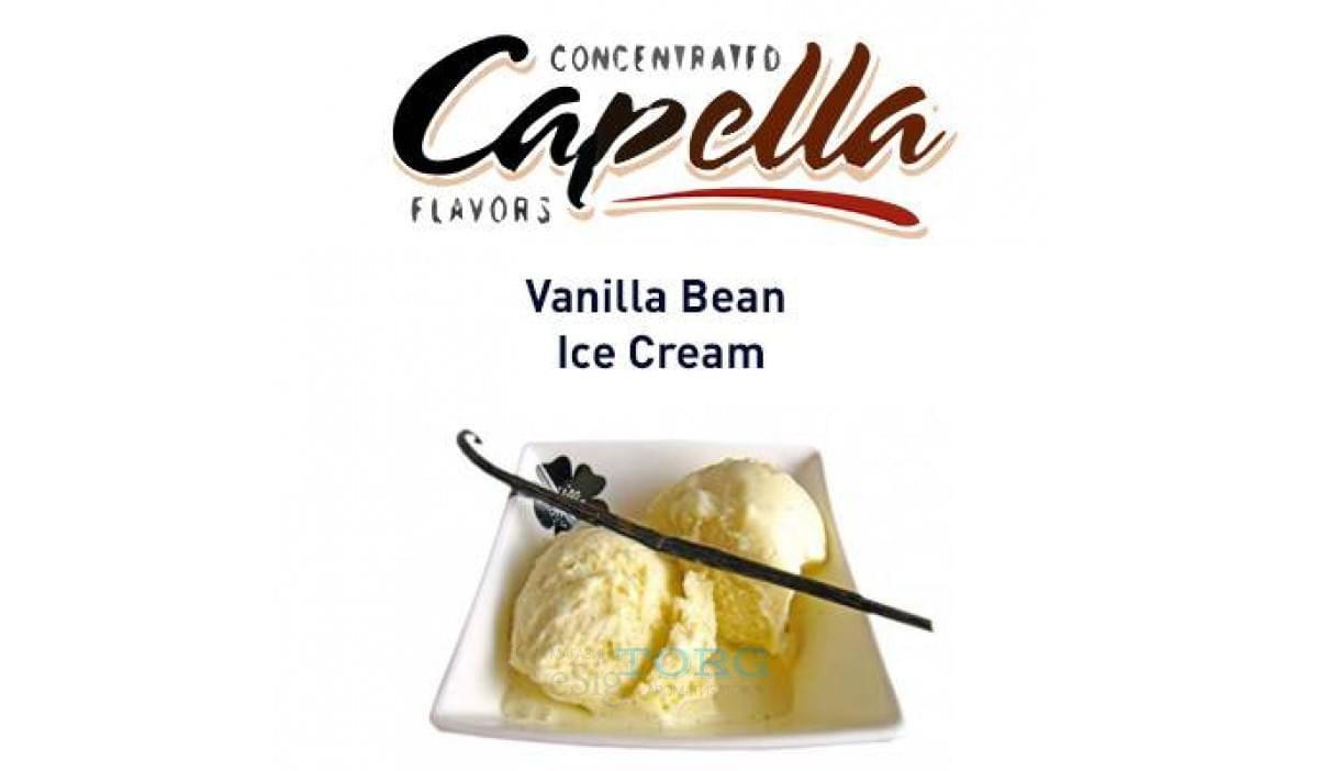 Ванильный вкус от Капеллы — Vanilla Bean Ice Cream. Этот ароматизатор повторяет вкусоароматические свойства ванильного мороженого. Продукт составлен на основе искусственных эссенций, в нем присутствует этиловый спирт. Арома подходит для применения в жидкости к электронным сигаретам, рекомендуем замешивать в дозировке 5% в соло и до 2-2.5% в рецептах.